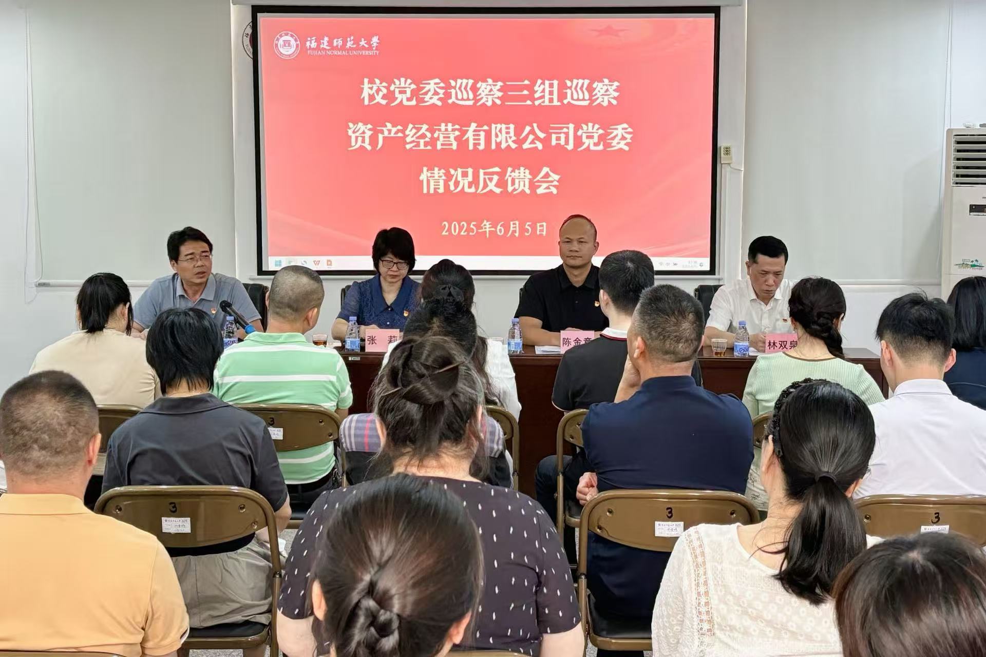 根据校党委巡察工作统一部署,6月5日下午,校党委巡察三组向资产经营有限公司党委反馈巡察情况。会前,巡察组主要领导向公司党委书记反馈主要巡察意见。巡察组全体成员,公司党政班子成员、党委委员、纪委委员、工会主席、科级干部,各部门负责人、党支部书记,教代会代表、民主党派人士,职工代表等参加了会议。会议由公司党委书记陈金章同志主持。