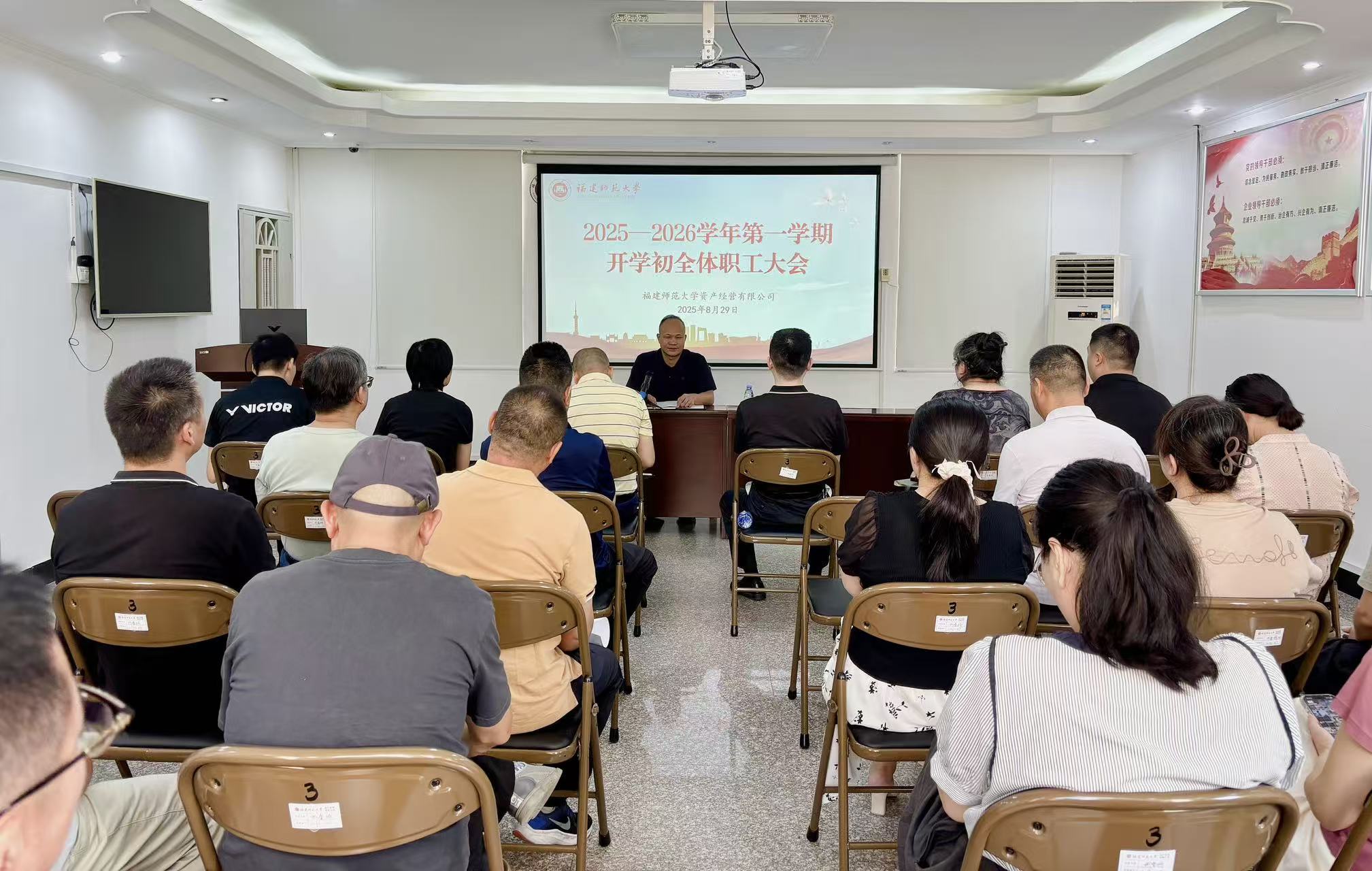 2025年8月29日,资产经营有限公司召开2025-2026学年秋季新学期职工大会,公司全体职工齐聚一堂,对上半年及暑期工作进行了全面总结,对新学期的重点工作进行部署,共启新学期工作新征程。